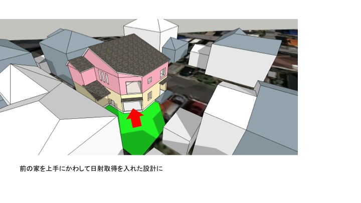 土地の状況が難しいのでグーグルスケッチアップで日影チェックもしっかりとやっておられます。